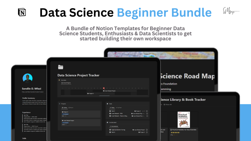 Qty: 1Notion Data Science Beginner Bundle is a bundle of 4 starter templates for Notion to help anyone in Data Science get started building their own workspace in Notion